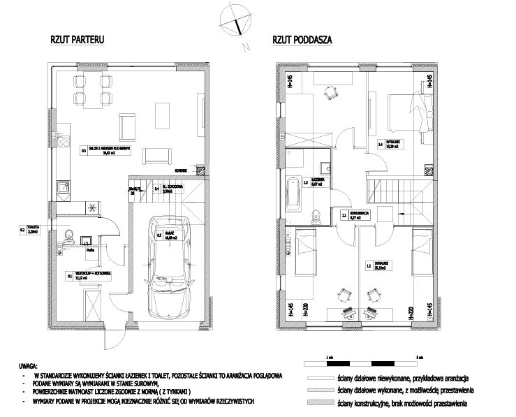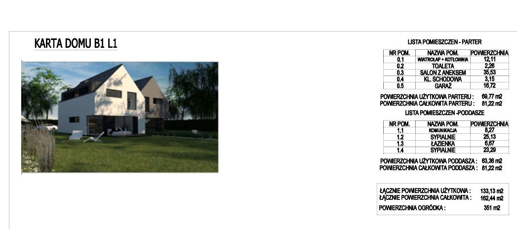 Dom bliźniak (B1 L1) o pow. całkowitej 162,44m2 w skład którego wchodzi: