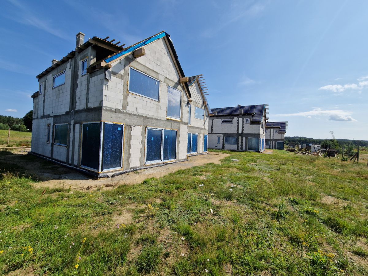 okna PCV, drzwi wejściowe antywłamaniowe, brama garażowa sterowana pilotem, dach pokryty blachą płaską na rąbek ,taras i podjazd wyłożone płytkami, trawa, tynki wewnętrzne gipsowe, ogrzewanie podłogowe, inst. elektryczna z osprzętem, inst. teletechniczna (dot. RTV, telefon, internet).