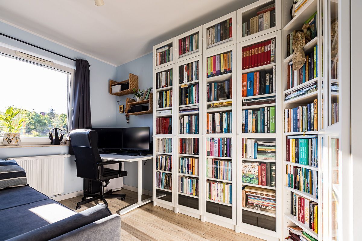 Mieszkanie bardzo słoneczne i ciepłe, o dwustronnej, południowo- wschodniej ekspozycji z dużą ilością światła dziennego. Nieruchomość o funkcjonalnym układzie pomieszczeń, wykończona w przemyślany sposób, w celu maksymalnego wykorzystania przestrzeni. Zabudowy meblowe wykonane pod wymiar idealnie wpasowane są we wnętrze. Kameralny salon z wkomponowaną kanapą stanowi doskonała przestrzeń do wypoczynku. Z pokoju wychodzimy na słoneczny balkon, miejsce w sam raz do wypicia porannej kawy. W aneksie kuchennym znajduje się wysokiej klasy sprzęt AGD. W łazience mieści się duża, przeszklona wanna a całość wykończona jest w korespondującym ze sobą stylem.