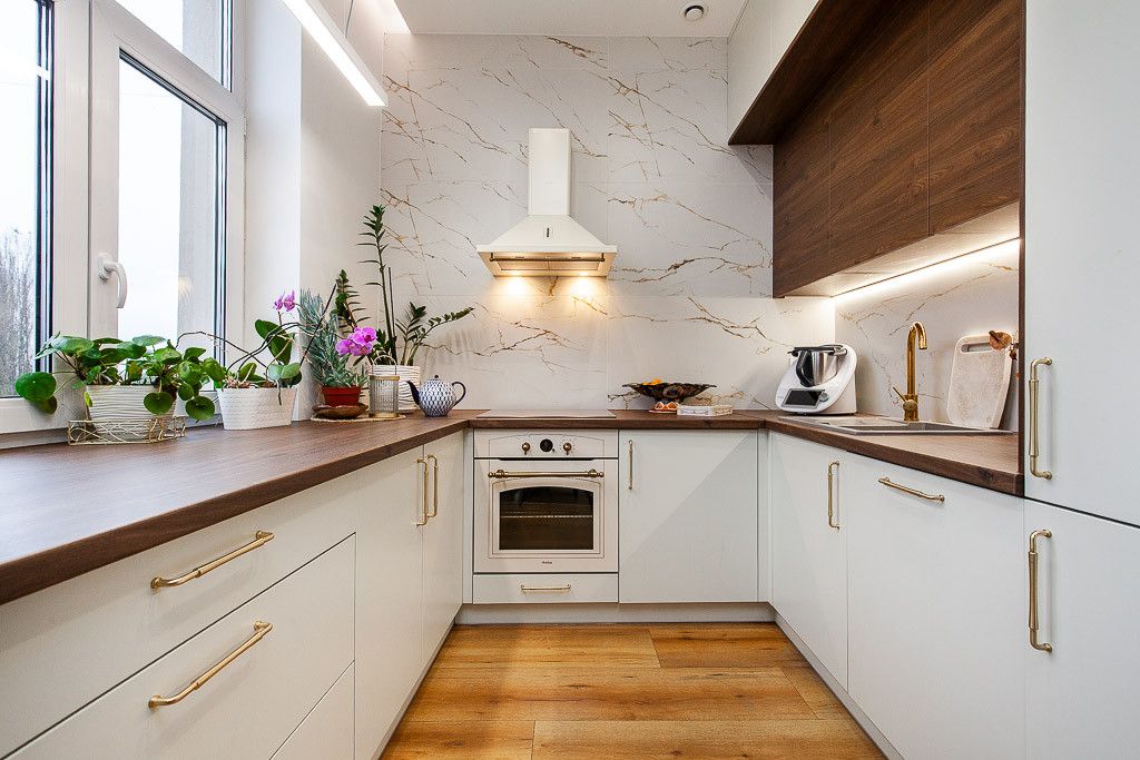 Kuchnia, wykonana na wymiar przez stolarza, jest w pełni wyposażona i doskonale doświetlona dzięki dużemu oknu z widokiem na zieleń.