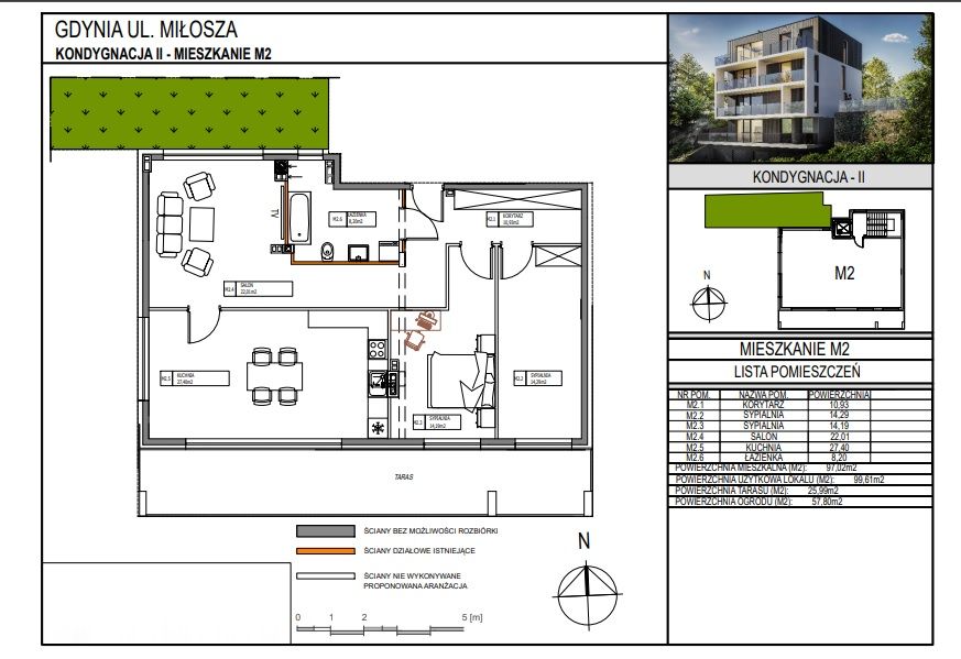 Nieruchomość M2 o pow. 97,81 m2 znajduje się na pierwszym piętrze budynku( całe piętro) i składa się z: