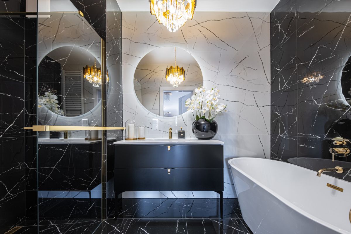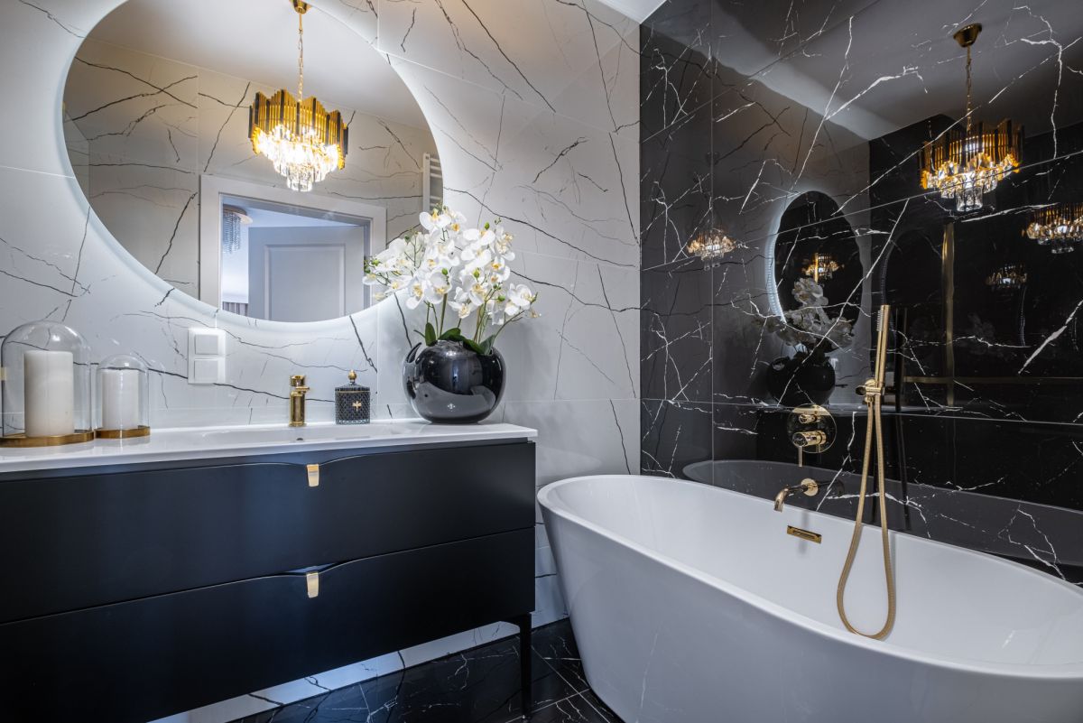 - Łazienka z wanną wolnostojącą i prysznicem