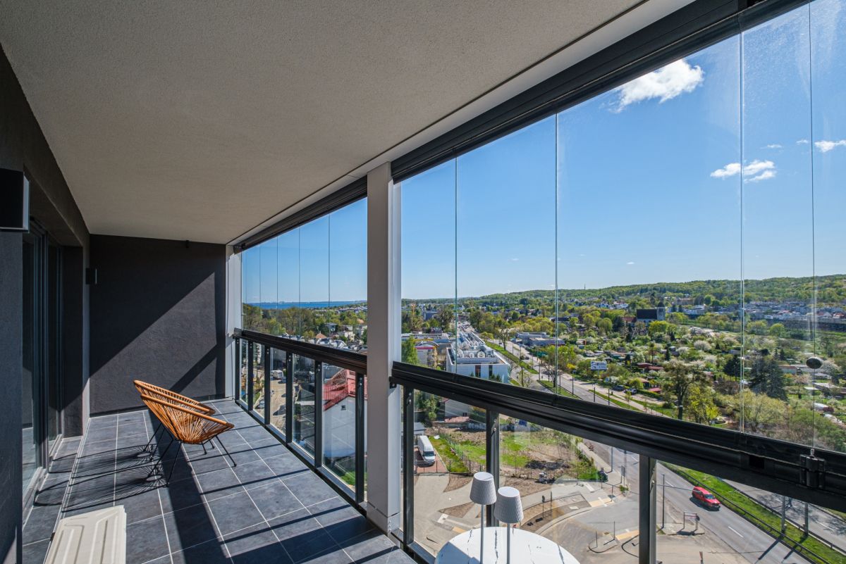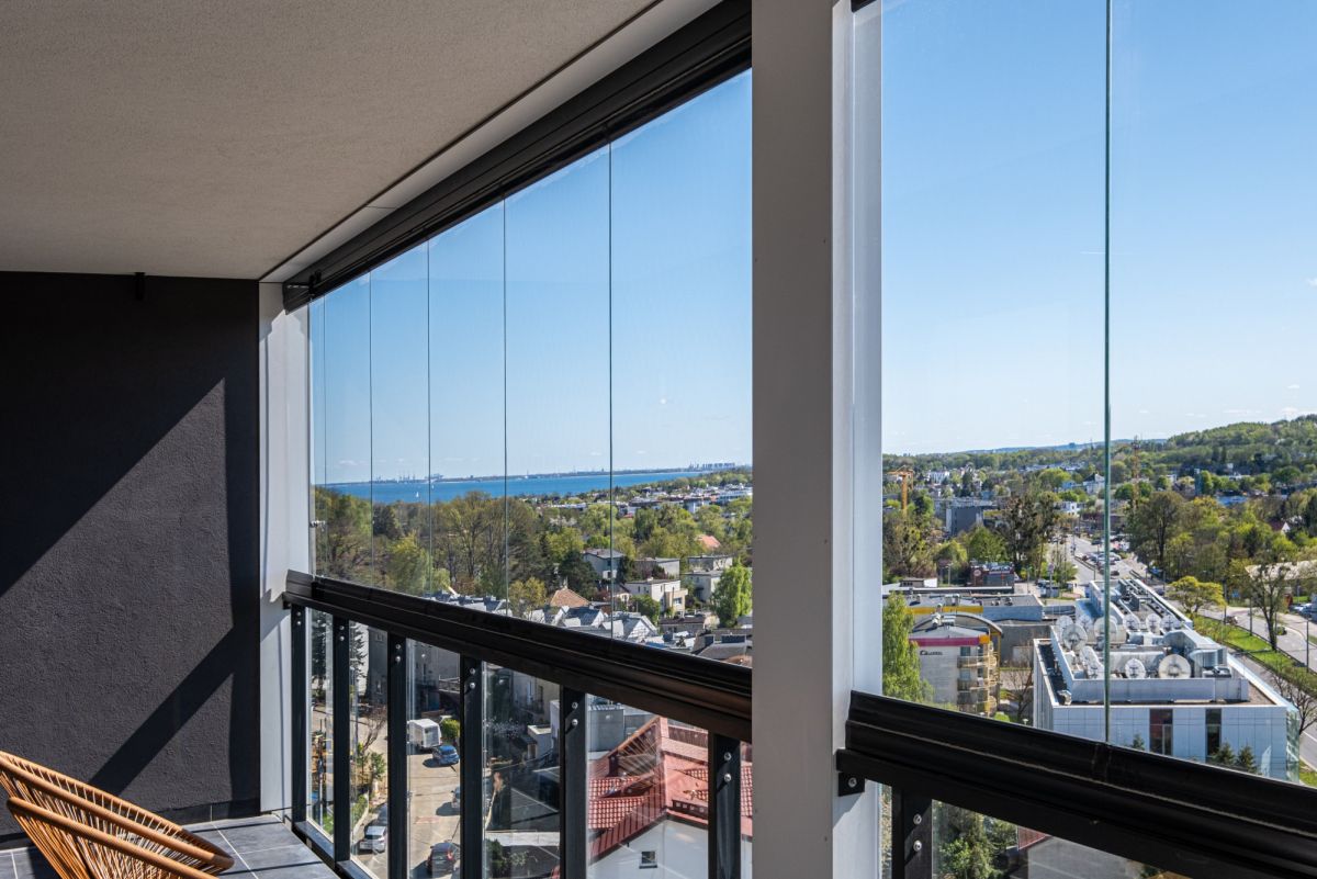 - Zjawiskowy widok na morze i panoramę Gdyni z przestronnego, przeszklonego tarasu (14,3 m²)