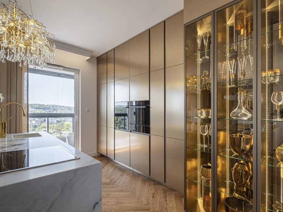 - Ekskluzywna kuchnia z włoskimi frontami w kolorze szampańskiego złota