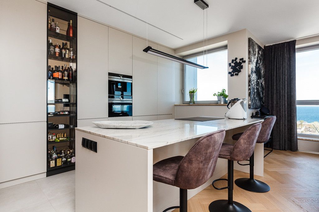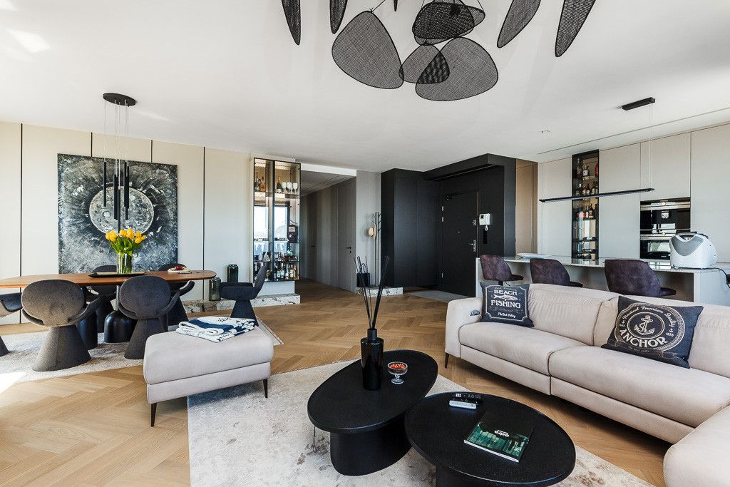 Najwyższy standard wykończenia, wysmakowane materiały i wyposażenie od renomowanych producentów (m.in.: KlER, Bonaldo) tworzą spójną, elegancką przestrzeń. Kuchnia wykonana pod wymiar z kamiennym blatem i wysokiej klasy sprzętami AGD. Nowoczesne rozwiązania, elektryczne zasłony, dyskretne oświetlenie LED oraz designerskie dodatki zapewniają pełen komfort na co dzień.