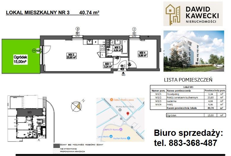 Komfortowe mieszkanie o powierzchni 40,74 m² z prywatnym ogródkiem o powierzchni 15 m². Lokal znajduje się na parterze i został zaprojektowany z myślą o komforcie codziennego życia. Funkcjonalny układ obejmuje: