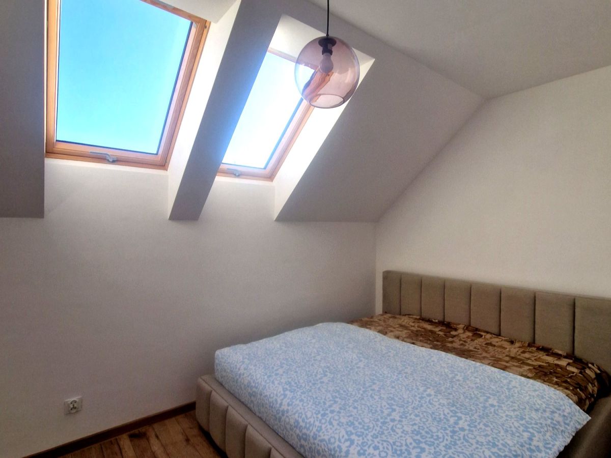 Na poddaszu znajduje się przestronny pokój o wymiarach 4 × 5 m, czyli 20 m² powierzchni całkowitej, z wysokością 2,25 m.